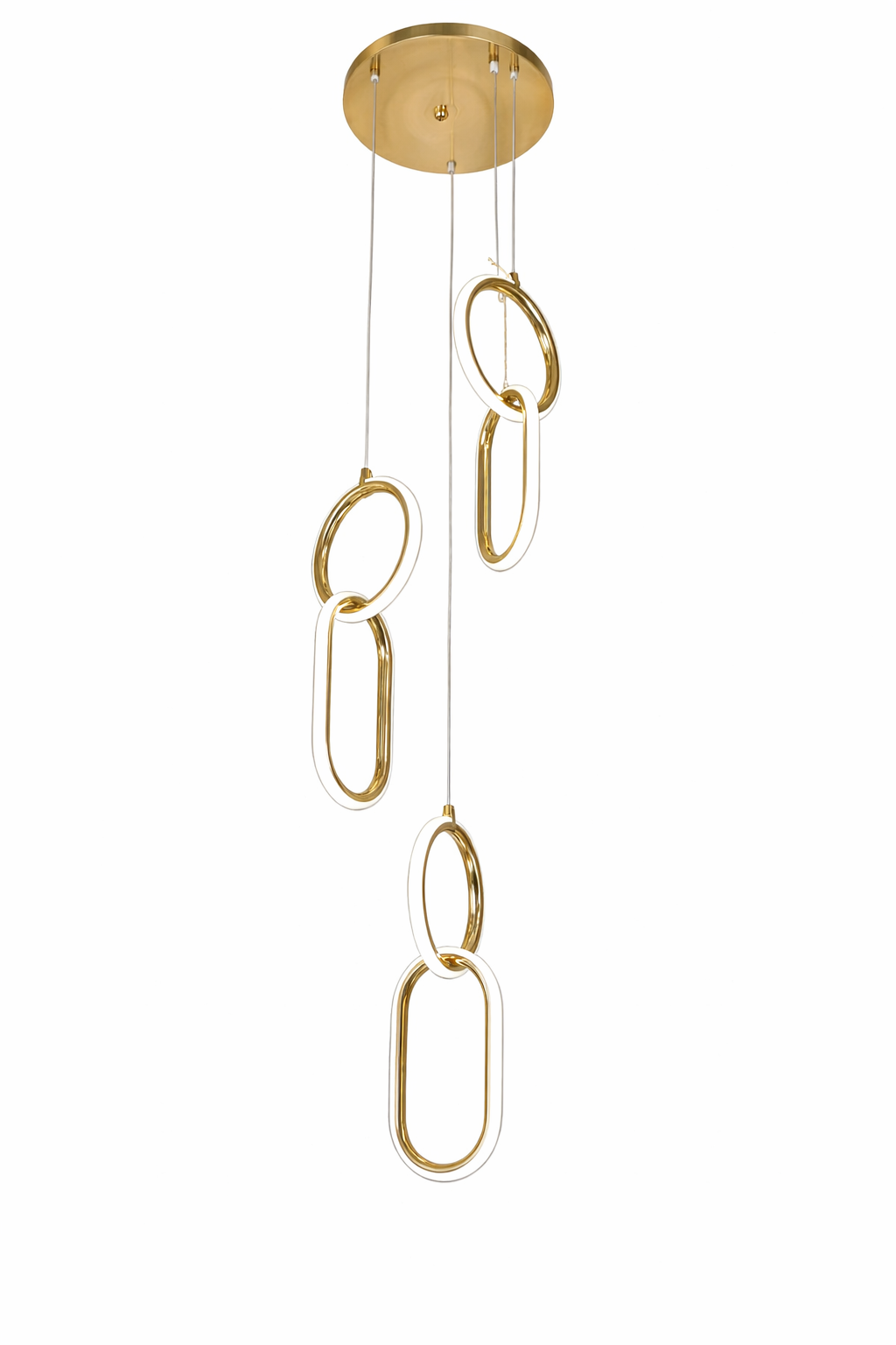 Redefine elegance with this modern interlinked LED pendant chandelier, designed to add a luxurious and artistic touch to your space. Featuring a series of sleek oval rings in a stunning gold finish, this fixture creates a striking cascading effect that instantly elevates any interior.